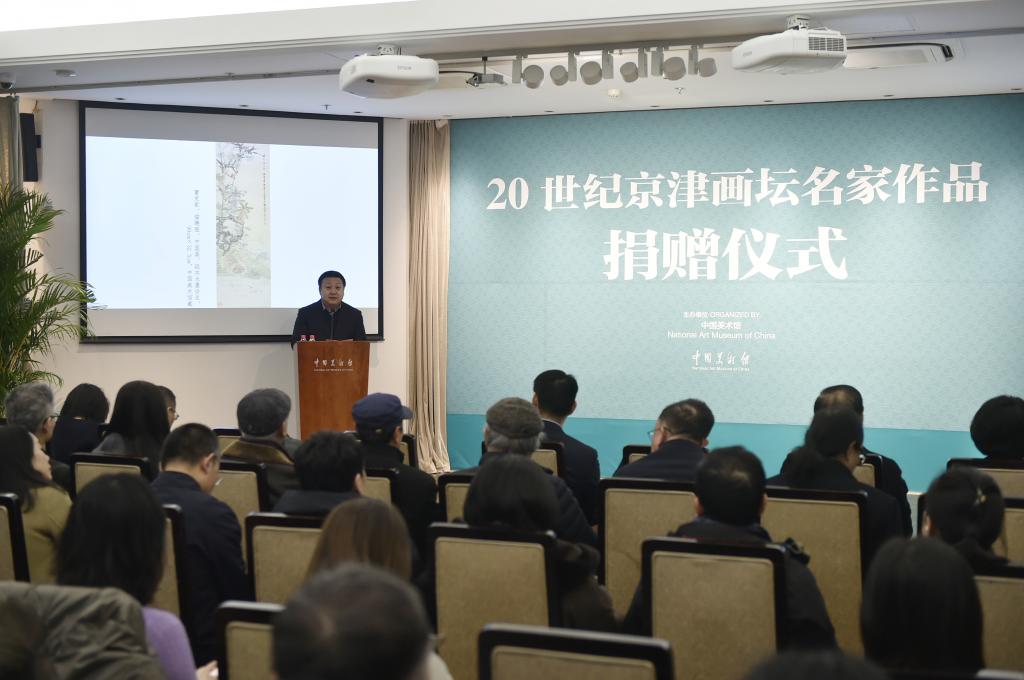 1月19日,中国美术馆馆长潘义奎在捐赠仪式上致辞。  近日,由中国美术馆主办的“湖上清风已百年——京津画坛艺术文献研究展”在北京展出,集中呈现京津画坛百余位艺术家的近200件艺术精品。展览期间,20世纪京津画坛名家作品捐赠仪式在北京中国美术馆举行。  新华社记者 鲁鹏 摄  1月19日在中国美术馆拍摄的捐赠仪式现场。  近日,由中国美术馆主办的“湖上清风已百年——京津画坛艺术文献研究展”在北京展出,集中
