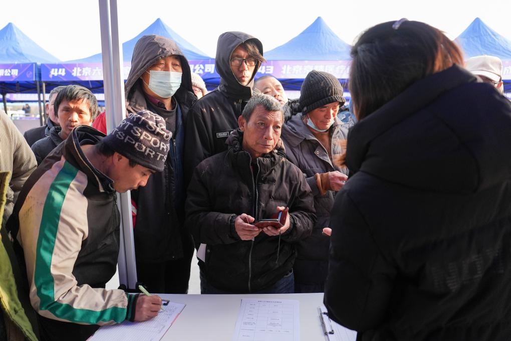 1月9日,求职者在马驹桥零工市场参加专场招聘会。